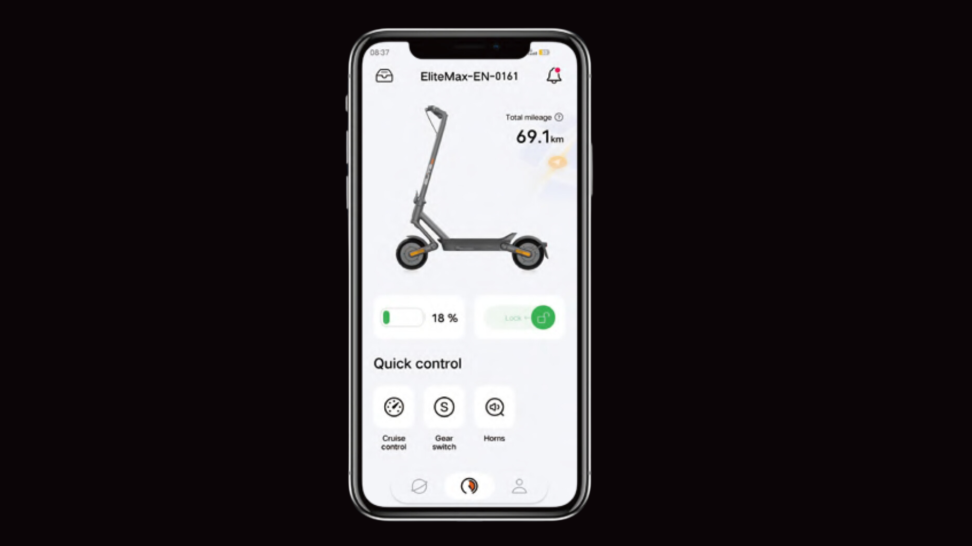 搭載21700動力型鋰三元電芯,高密度能量儲存,EliteMax 一次充滿電即可行駛 34 英里(55 公里)