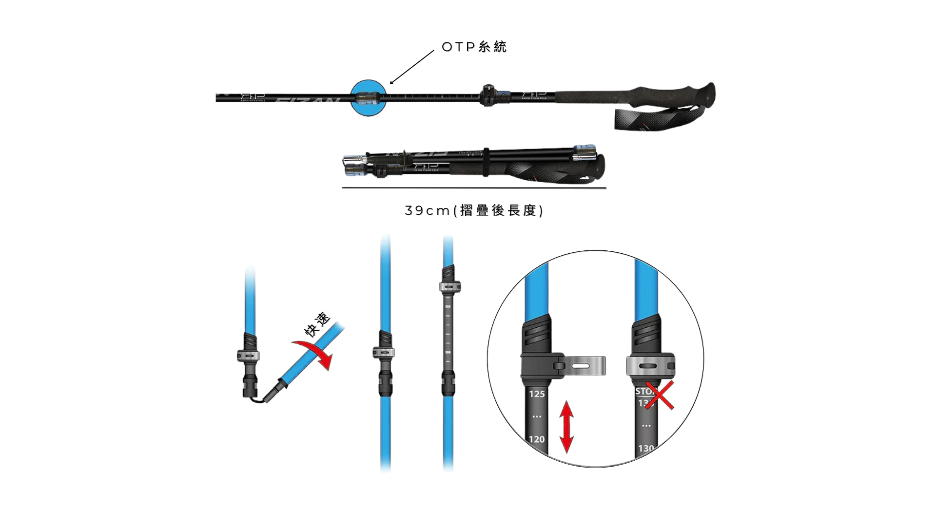 三段式摺疊設計 (摺疊後長度39cm)